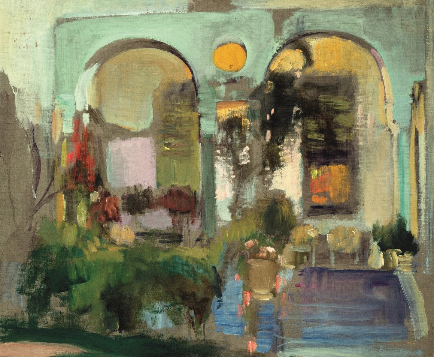 Le interesa el color, la luz, la atmósfera, y se advierte cierto camino hacia la abstracción. La pincelada, muy suelta, rápida y natural, capta la luz del instante.