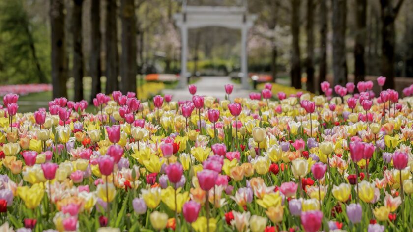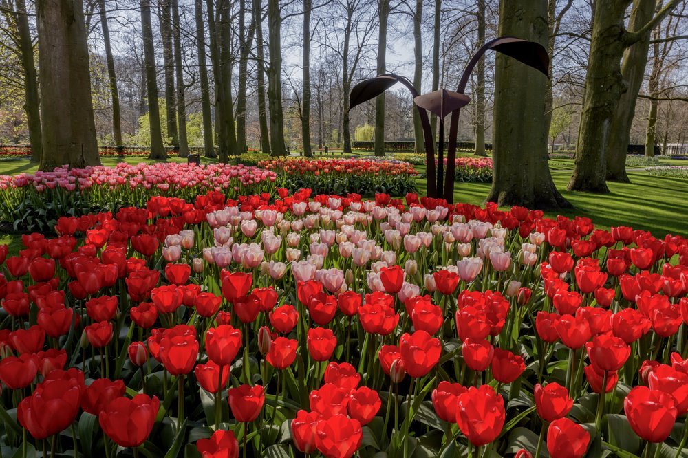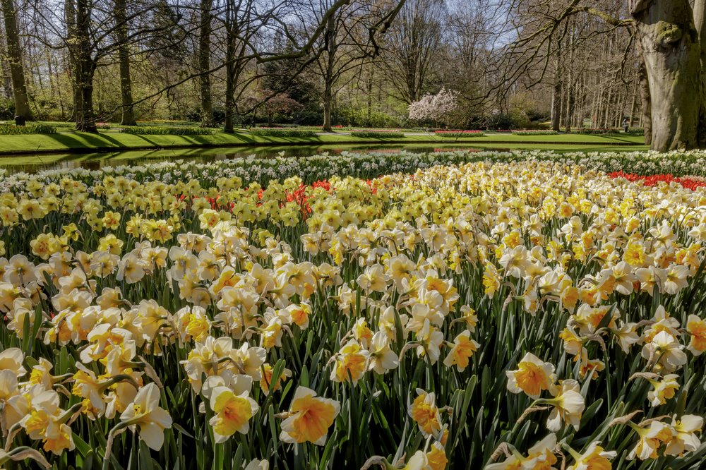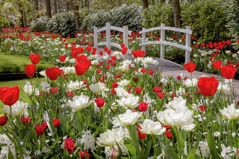 Keukenhof, el popular parque de primavera y el jardín de tulipanes más grande mundo, está situado en Lisse, Países Bajos. El parque cubre 32 hectáreas de tierra donde, cada otoño, 40 jardineros plantan a mano un total de alrededor de siete millones de bulbos de flor.