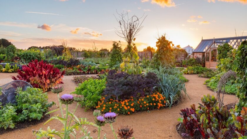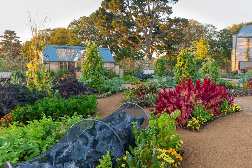 El espacio, que ocupa 3.738 metros cuadrados y se conecta perfectamente con el Wildlife Garden, es una caja con delicias comestibles dividida en tres secciones y cultivadas sin excavación, unidas por un amplio eje central de pérgolas arqueadas adornadas con trepadoras comestibles que incluyen calabazas de colores brillantes y exóticas flores de la pasión.