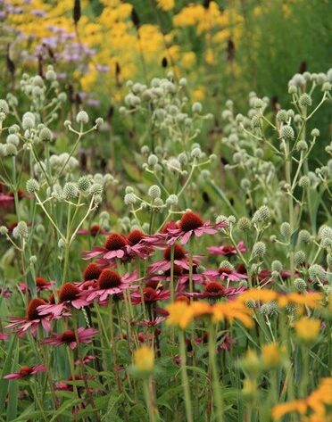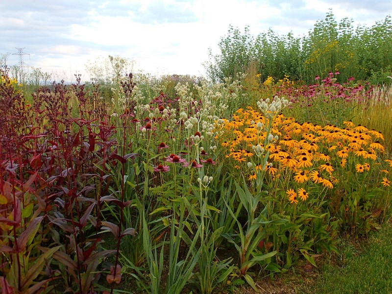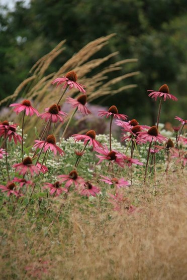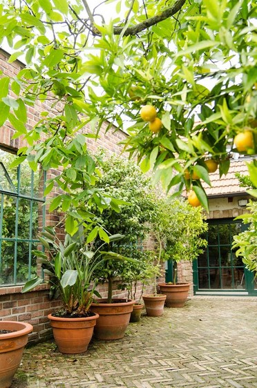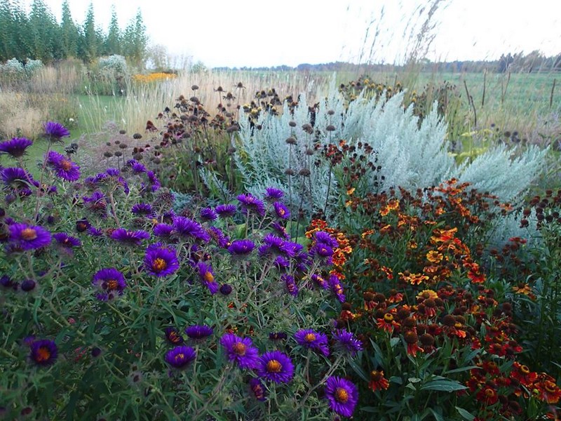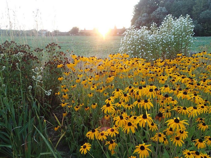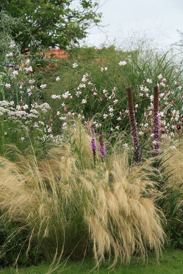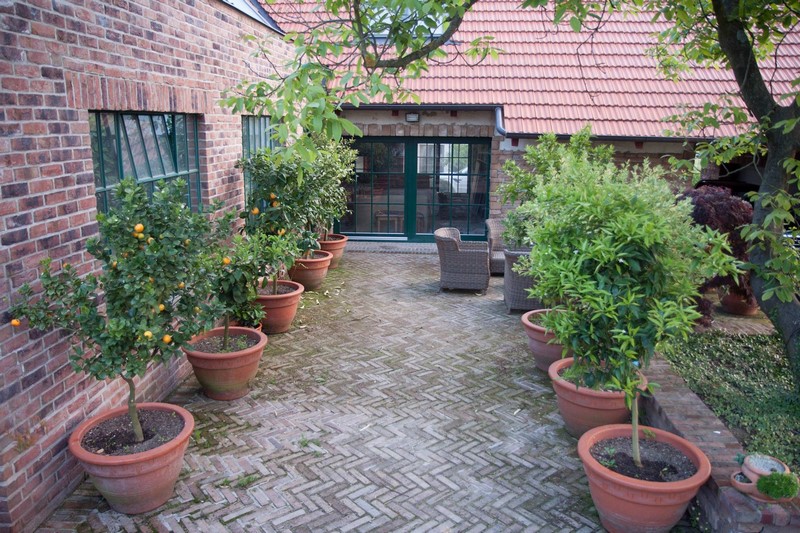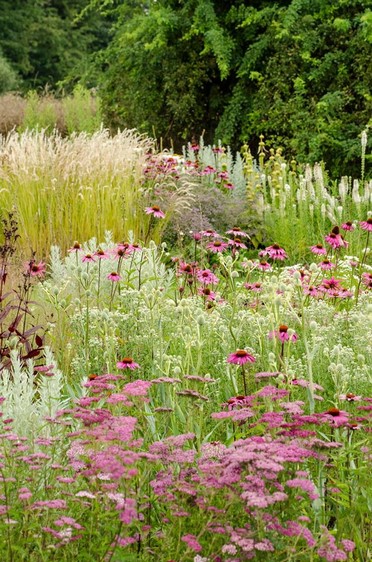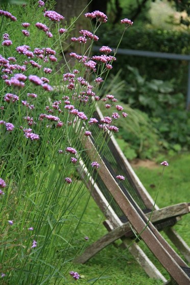 El jardín combina espacios con forma libre junto a setos recortados. En la superficie libre y bajo los árboles frutales se suelen plantar gran cantidad de plantas vivaces, bulbos, gramíneas, rosas y arbustos en flor.