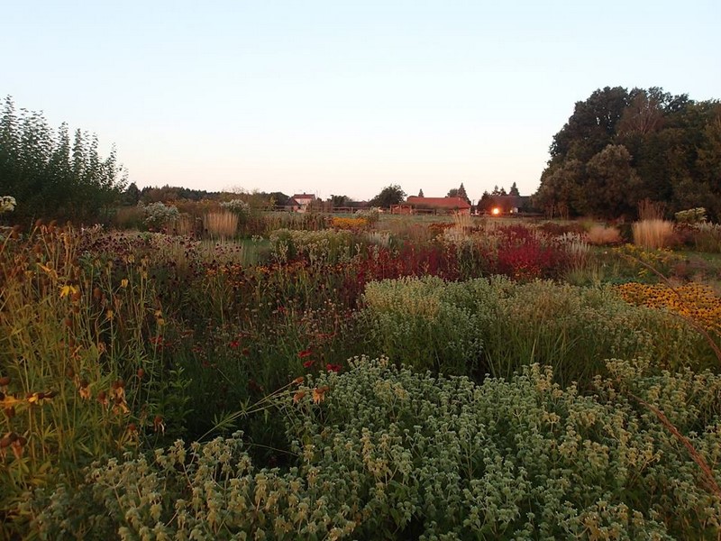 Hace un par de años se incorporó una zona de pradera en una superficie de 800 m2. Se estableció entre agosto y octubre de 2014, sobre un suelo arcilloso. Nunca se ha regado, incluso durante el 2015 que, al parecer, fue el año más seco de última década en esa región. Se plantaron cerca de 10.000 plantas de semillero en alveolos de 3 x 3 x 6 cm, con plantel que en su mayoría procedía de semillas.